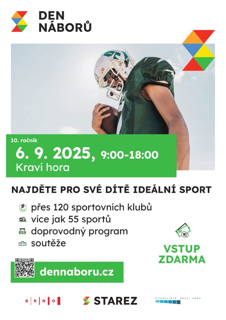 V sobotu 6.9.2025 se bude na Kraví hoře v Brně konat již 10. ročník největší náborové akce do sportovních klubů a zájmových kroužků v Brně, které se také účastníme.